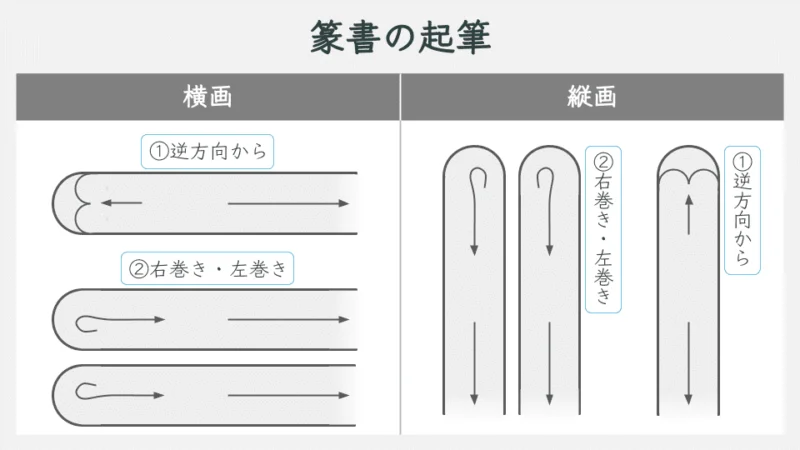 - 起筆は丸く(逆筆)