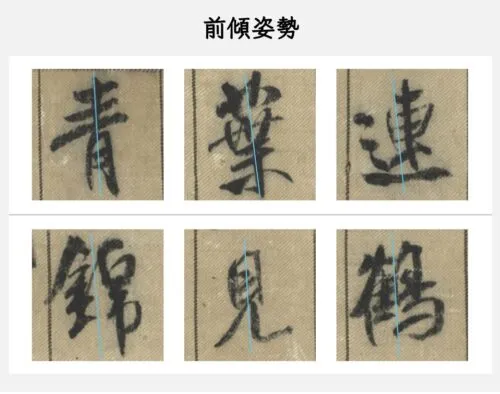 蜀素帖のほぼすべての文字が前傾姿勢(左斜め)に傾いています。